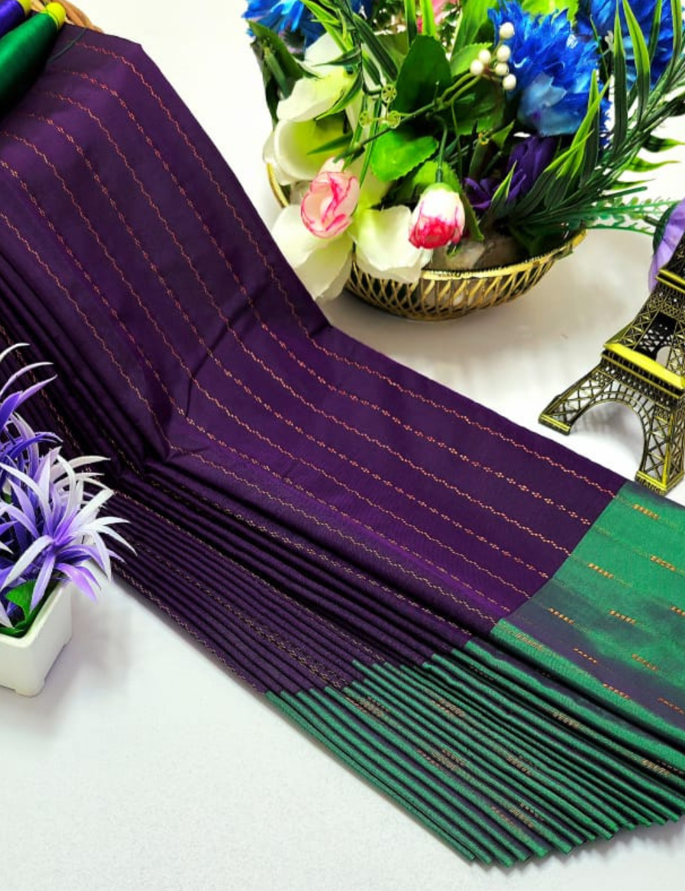 🌿 Elegant Green & Violet Kalyani Cotton Saree 🌸