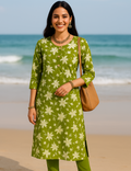 Embrace elegance and comfort with our Mehandhi Green Cotton Kurthi, adorned with delicate white floral prints. Crafted from breathable, high-quality cotton fabric, this kurthi offers all-day ease while keeping your style effortlessly graceful. The soothing mehandhi green base beautifully complements the subtle floral patterns, making it a perfect pick for everyday wear, office looks, or casual outings. Pair it with white leggings or palazzos for a chic and refreshing ensemble.