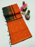 Orange With Black Colour Maheswari Silk Cotton Sarees