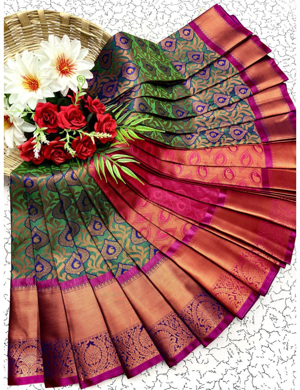 Peacock Green With Rani Pink Kanchivaram Semi Silk Sarees